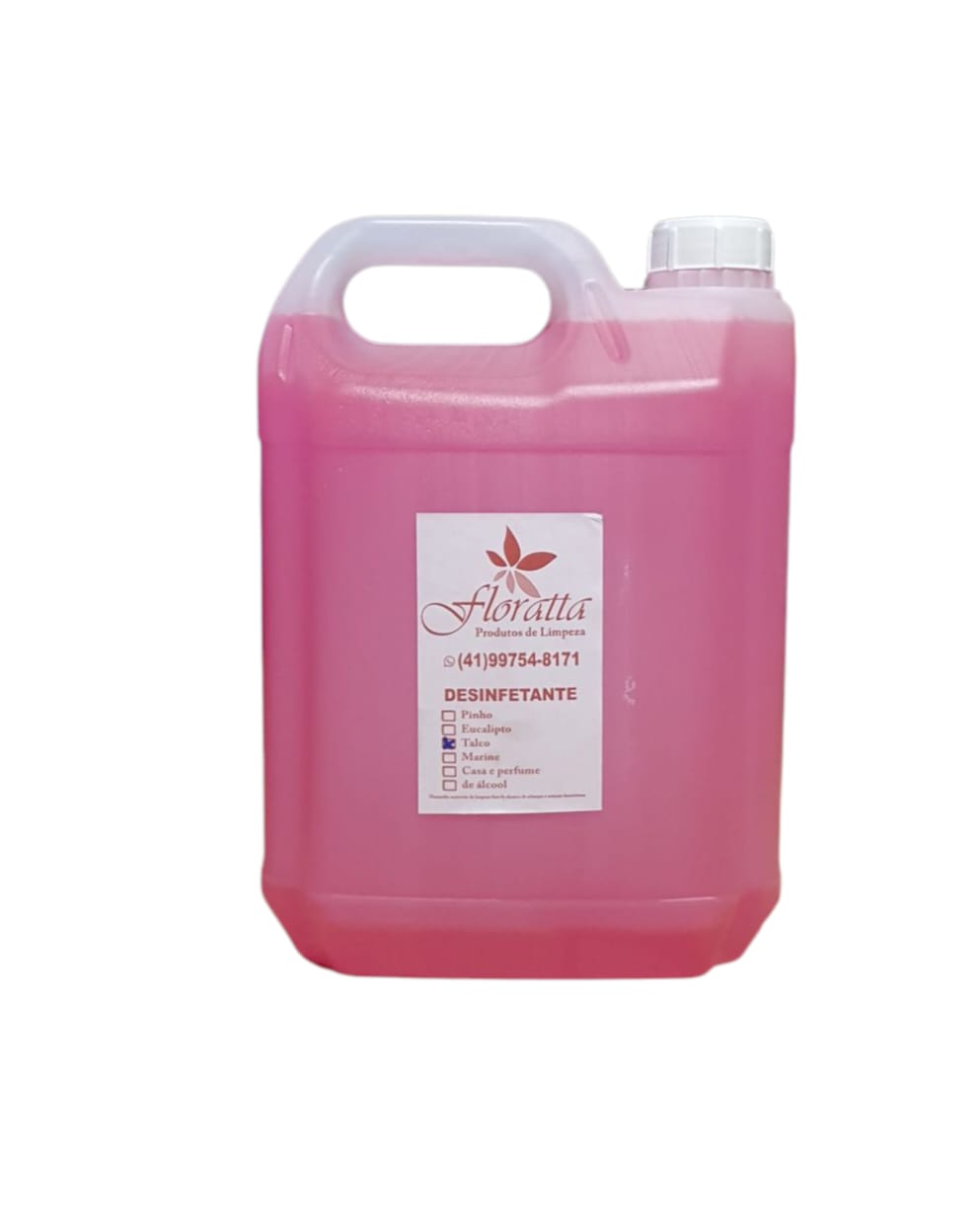 O Desinfetante Cheiro de Talco 5L é um produto de fabricação própria Floratta, ideal para quem busca higiene e frescor em grande volume para ambientes diversos. Sua fórmula potente elimina germes, bactérias e maus odores, deixando um aroma suave e agradável de talco que perfuma o ambiente por muito mais tempo. Perfeito para residências, escritórios, escolas e locais públicos.